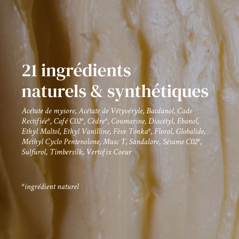 Prunus Amygdalus Dulcis (Sweet Almond) Oil, Parfum (Fragrance), Triticum Vulgare (Wheat) Germ Oil, Tocopherol, Coumarin, D-Limonene, Isoeugenol